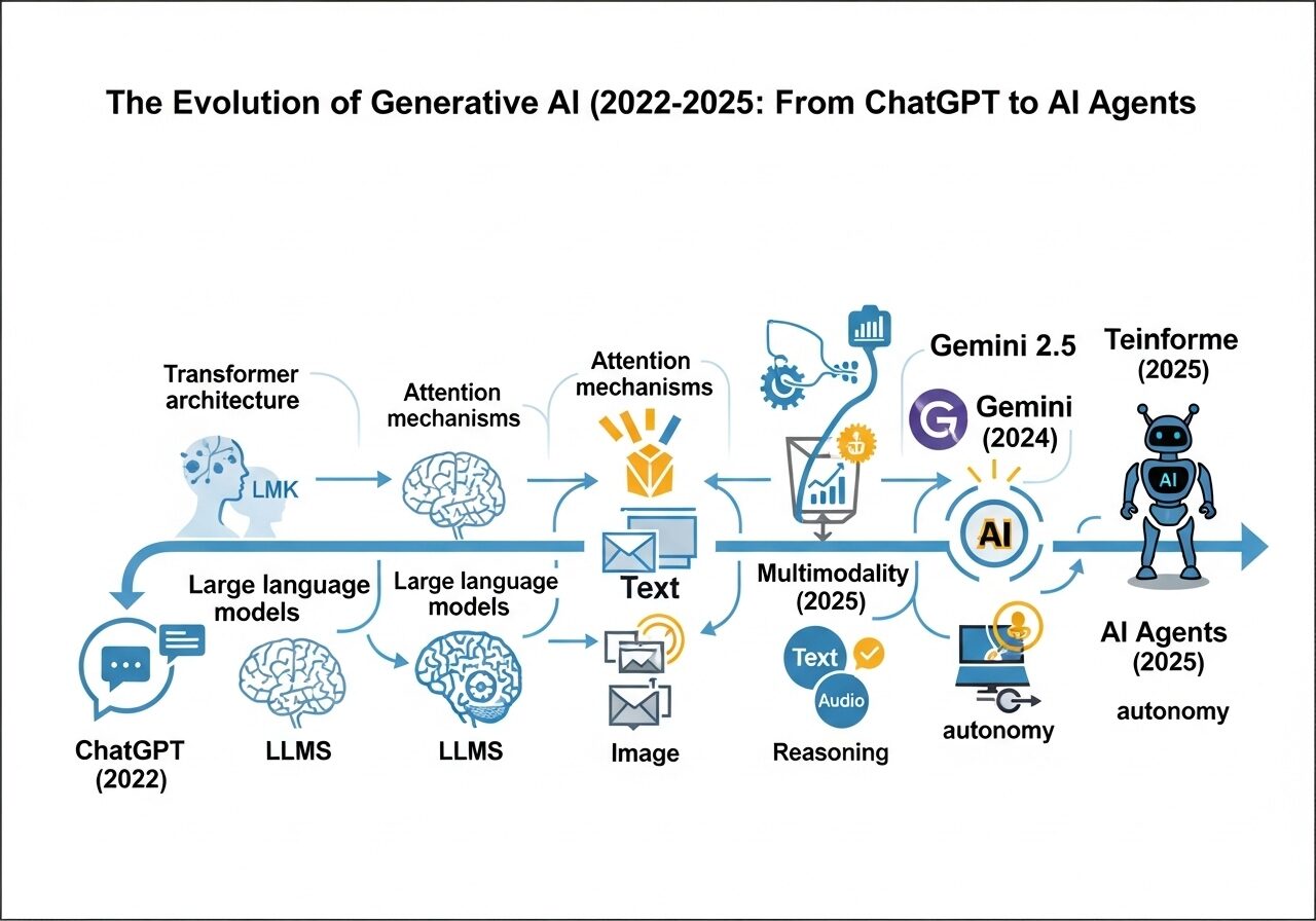本稿で概観したように、2022年後半から2025年初頭にかけての期間は、生成AIが驚異的な進化を遂げた時代であった。その軌跡は、最初のChatGPTが示した単純な「プロンプトと応答」のパラダイムから、自律的に目標を達成するために行動する「AIエージェント」の登場へと、わずか2年余りで駆け抜けた。