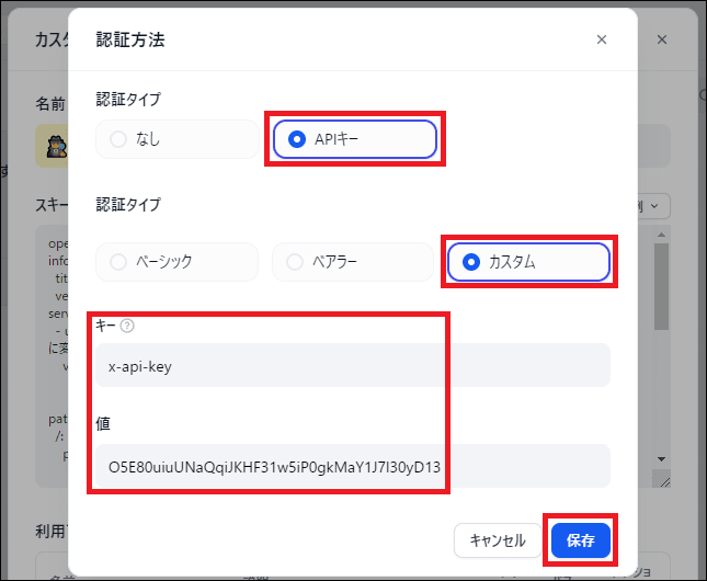 APIへのアクセスに必要な認証キー(x-api-key)を設定します。