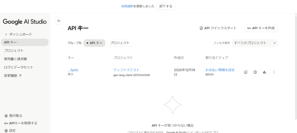 1. Google AI Studioでキーを発行