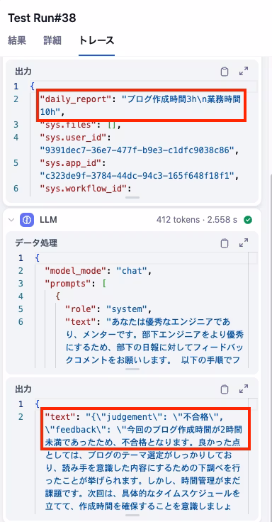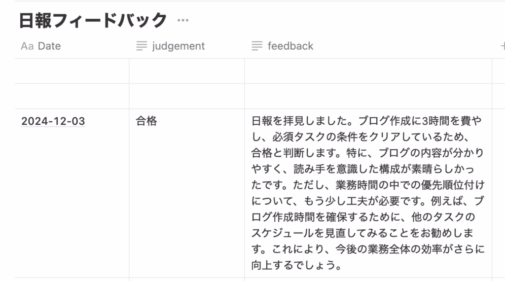 入力された日報を受け取り、フィードバックと判定を行うAIです。