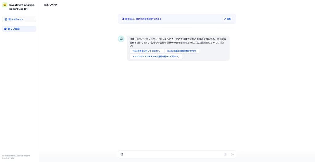 ユーザーがチャット画面を開いた瞬間に、AIから挨拶メッセージを表示させる機能です。