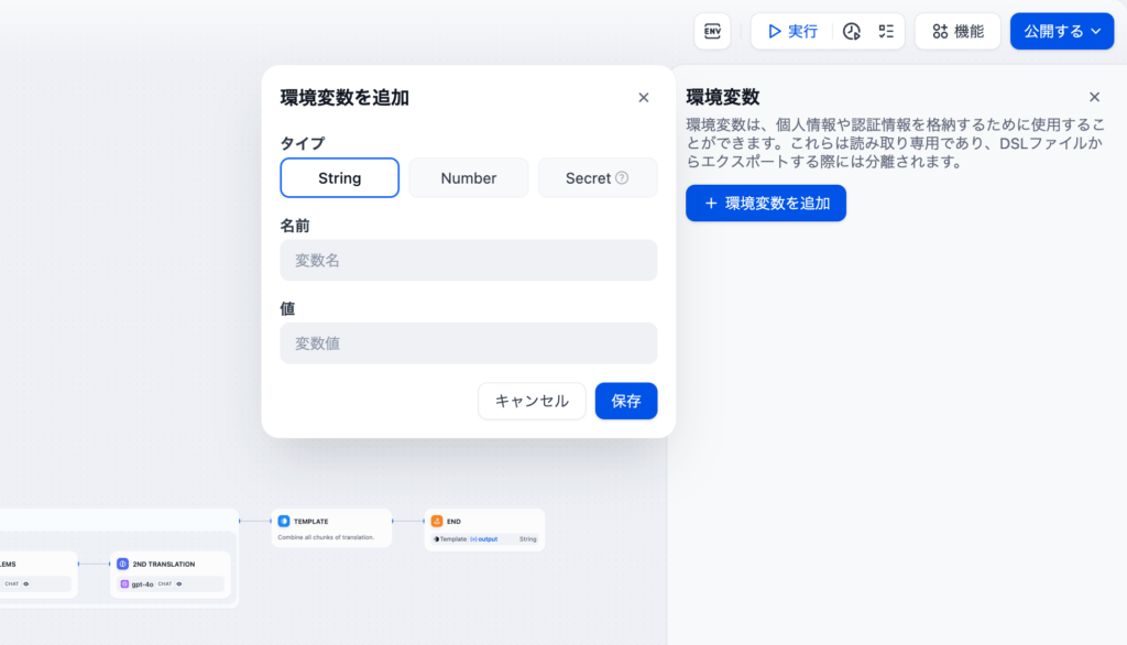 ワークフローやチャットフローにおいて、ノード間(処理のステップ間)でデータを受け渡すための箱が「変数」です。変数を使いこなすことで、動的で複雑な処理が可能になります。