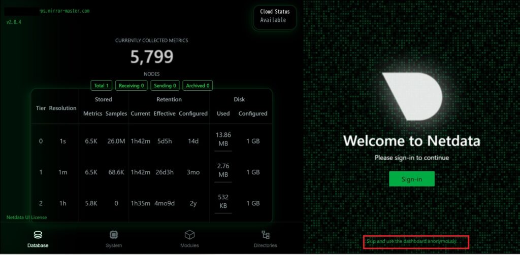 最後に、サーバー内部の状況をリアルタイムで監視する「目」を取り付けます。Netdataは、CPU負荷やトラフィック、Dockerコンテナの状態を美しいグラフィカルなダッシュボードで表示してくれます。