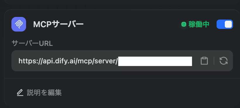 設定が完了すると、MCPサーバーのURLが発行されます。このURLをコピーしておきましょう。