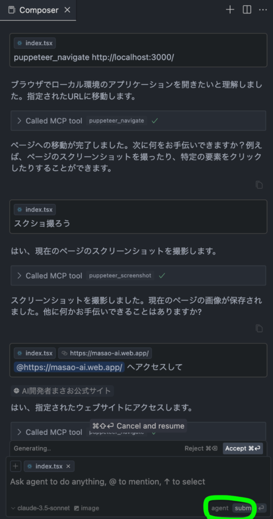 現在は「Composer」機能(Ctrl+I / Cmd+I)やエージェントモードでMCPツールが活躍します。