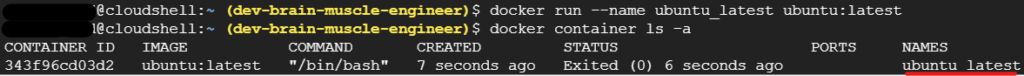 $ docker run --name ubuntu_latest ubuntu:latest