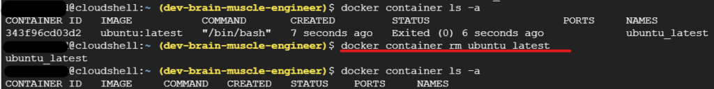 コンテナ名は削除するときに使います.削除のたびにdocker container ls -aコマンドでコンテナ名を確認するのは面倒ですよね.