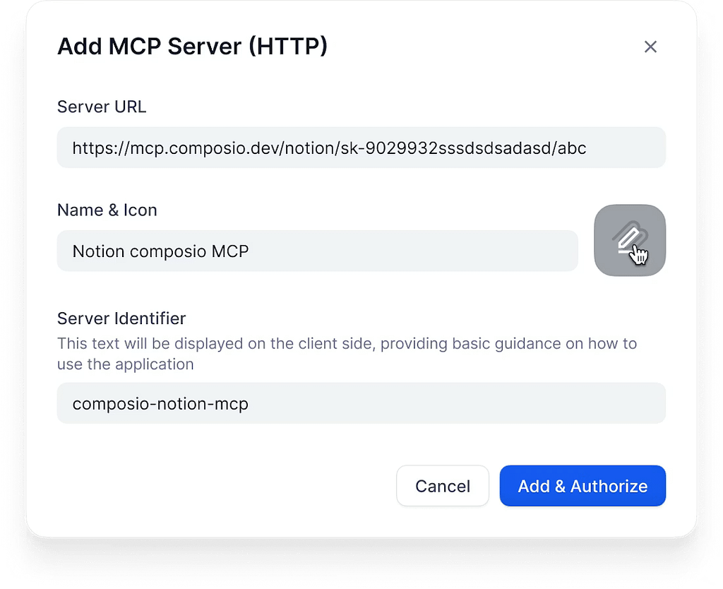 https://api.example.com/mcp/sse) - 名前・アイコン: Dify内で表示される名称です。