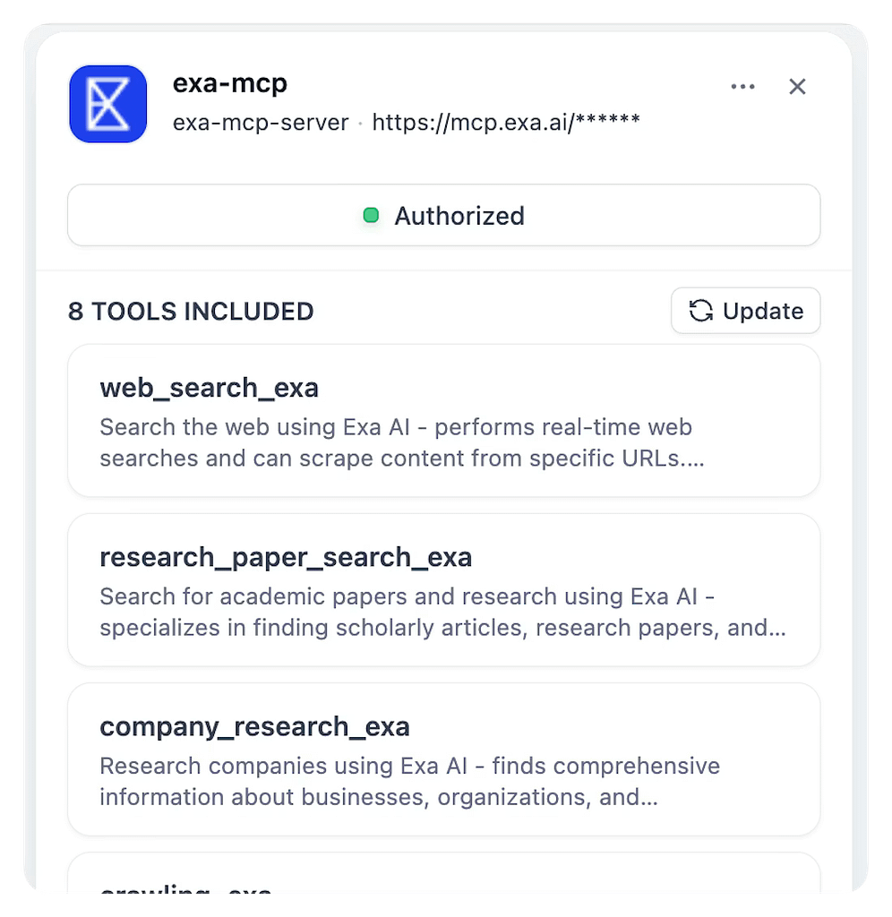 解決策: サーバーカードの「ツールの更新」をクリックして、最新のツール定義を再取得してください。