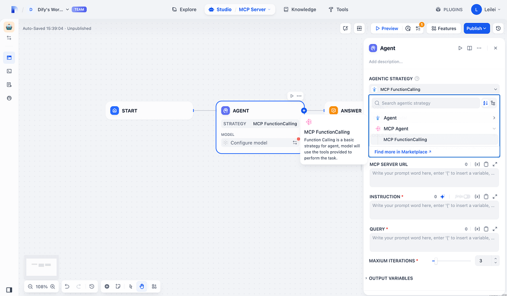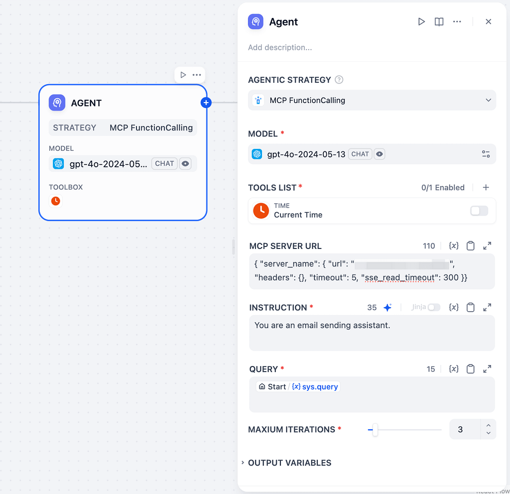 - モデルには、ツール呼び出し(Function Calling)の性能が高いGPT-4oやClaude 3.5 Sonnetなどを設定します。