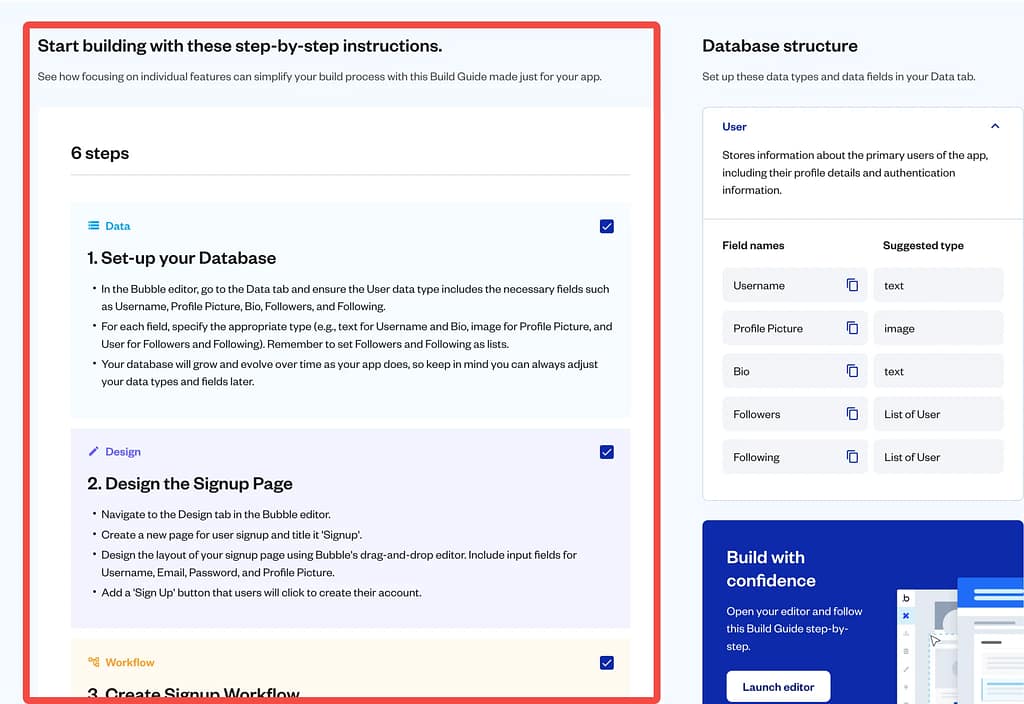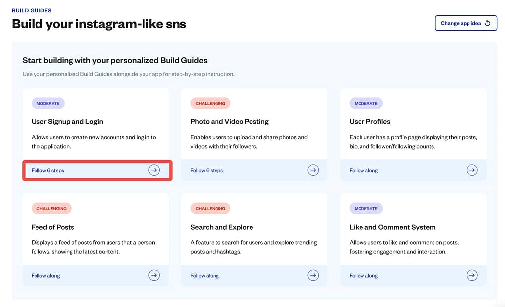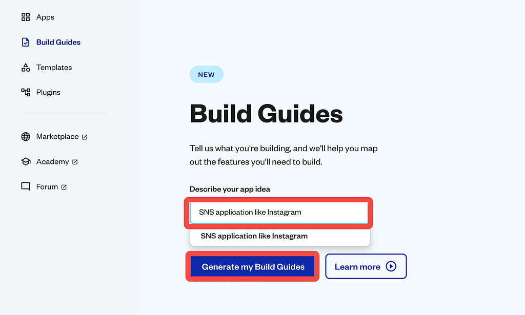 - Build Guides(ビルドガイド): 作りたいアプリに合わせた開発手順書を作成する機能