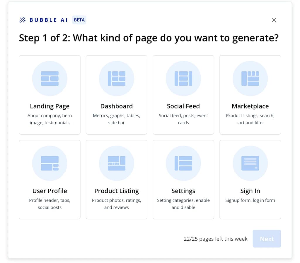 そんな時でも、Bubble AIならテキストを入力するだけで、数秒でハイクオリティなページを提案してくれます。