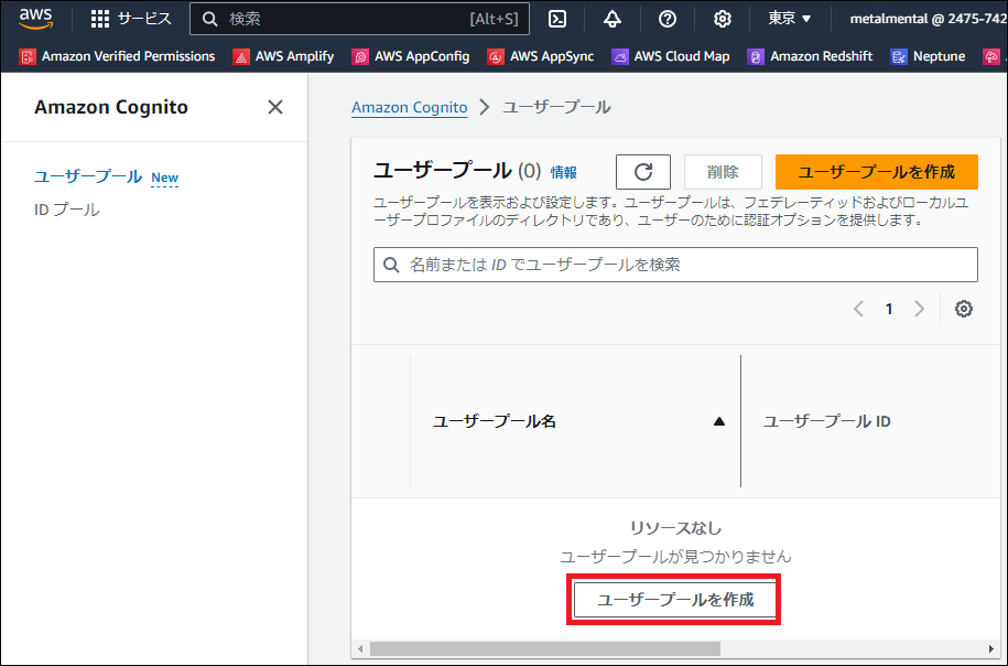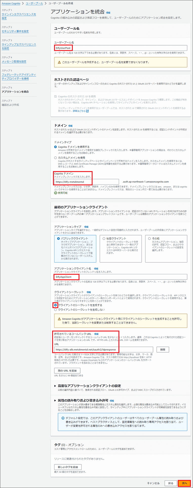 次に、認証基盤となるCognitoユーザープールを作成し、ALBと連携させます。