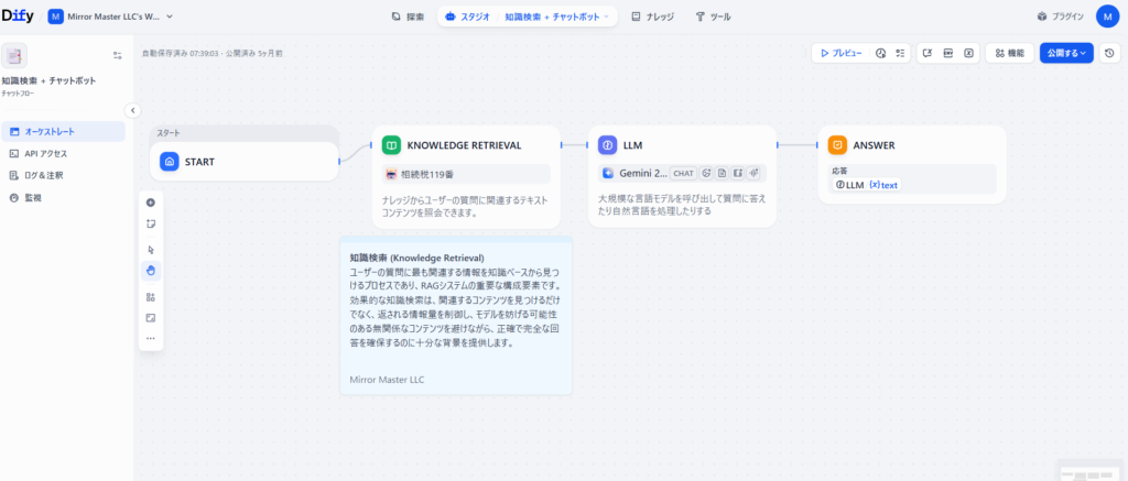 「単に検索結果を並べるだけでなく、情報の空白(Knowledge Gap)を自ら見つけ出し、納得いくまで調査を続けるAIが欲しい」 Difyの「Research Agent Process Flow(調査エージェントのプロセスフロー)」は、そんな要望に応える高度なリサーチ自動化テンプ... -