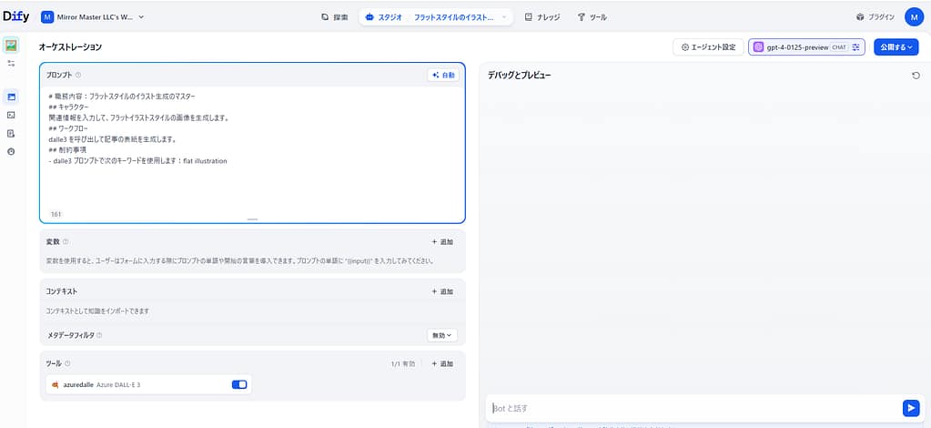 SEO(検索エンジン最適化)に強いブログ記事を書くためには、キーワード選定、競合調査、構成案の作成、そして執筆と、膨大な時間と労力が必要です。 Difyの「SEO Blog Generator(SEOブログジェネレーター)」テンプレートは、指定したキーワードに基づい... -