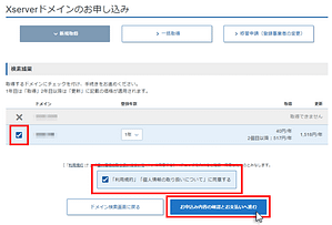 希望のプランを選択して「利用する」にチェックを入れて<XServerアカウントの登録へ進む>を選択します。
