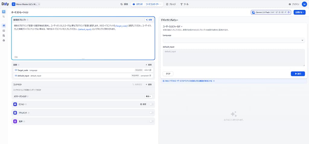 「Pythonで書かれたこのロジックを、JavaScriptで書き直したい」「古い言語のシステムをモダンな言語に移行したい」といったシーンで、手作業での書き換えに時間を取られていませんか? Difyの「Code Converter(コードコンバーター)」テンプレートは、あ... -